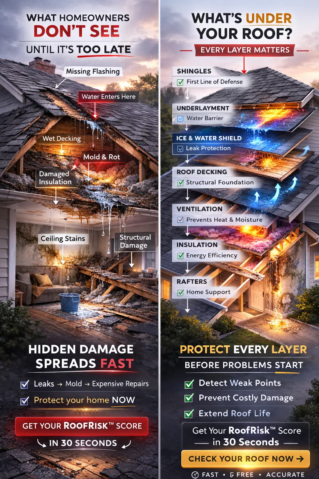 RoofRisk™ helps homeowners spot those risks early — before repairs get expensive.